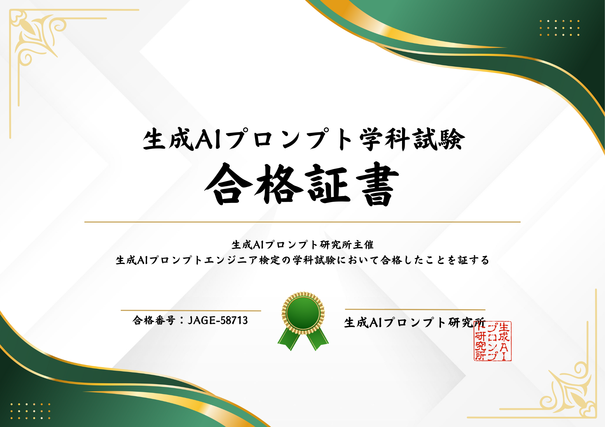 【2025年度】生成AIプロンプトエンジニア学科試験に合格しました。
